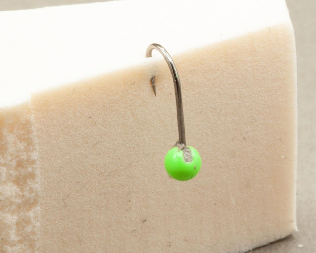 Adhesives. Fixing these tiny beads to equally tiny hooks was the last part of the puzzle. I started with UV resin with some success.